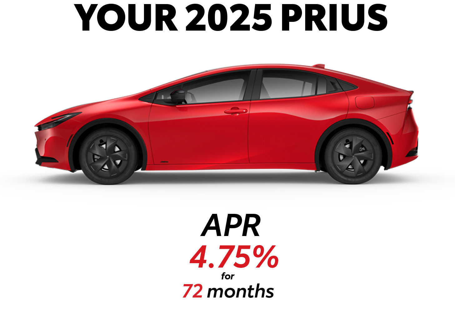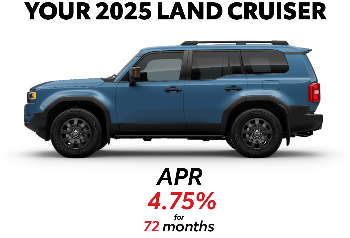 4.75% APR FINANCING UP TO 72 MONTHS AVAILABLE TO WELL QUALIFIED BUYERS THROUGH TOYOTA FINANCIAL SERVICES. 72 MONTHLY PAYMENTS OF $15.99 FOR EACH $1000 BORROWED. RESTRICTIONS APPLY. SEE DEALER FOR MAXIMUM AMOUNT WHICH CAN BE FINANCED AT ADVERTISED APR. NOT ALL BUYERS WILL QUALIFY. TAKE RETAIL DELIVERY FROM NEW DEALER STOCK BY 12/1/25; SUBJECT TO VEHICLE AVAILABILITY. DEALER FEES ARE EXTRA AND VARY BY DEALER. DEALER SETS FINAL PRICE. OFFER MAY NOT BE COMBINED WITH OTHER OFFERS UNLESS SPECIFIED OTHERWISE. VEHICLE SHOWN MAY BE PROTOTYPE AND/OR SHOWN WITH OPTIONS.