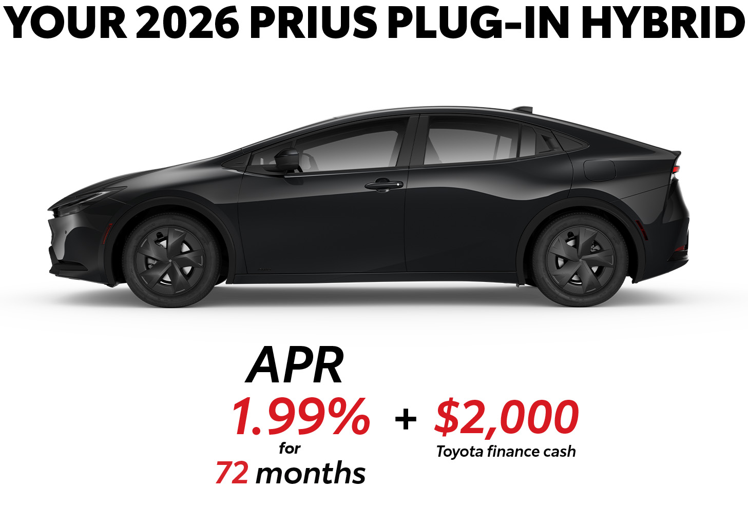 1.99% APR FINANCING UP TO 72 MONTHS AVAILABLE TO WELL QUALIFIED BUYERS THROUGH TOYOTA FINANCIAL SERVICES. 72 MONTHLY PAYMENTS OF $14.75 FOR EACH $1000 BORROWED. RESTRICTIONS APPLY. SEE DEALER FOR MAXIMUM AMOUNT WHICH CAN BE FINANCED AT ADVERTISED APR. NOT ALL BUYERS WILL QUALIFY. TAKE RETAIL DELIVERY FROM NEW DEALER STOCK BY 5/4/26; SUBJECT TO VEHICLE AVAILABILITY. DEALER FEES ARE EXTRA AND VARY BY DEALER. DEALER SETS FINAL PRICE. OFFER MAY NOT BE COMBINED WITH OTHER OFFERS UNLESS SPECIFIED OTHERWISE. VEHICLE SHOWN MAY BE PROTOTYPE AND/OR SHOWN WITH OPTIONS.